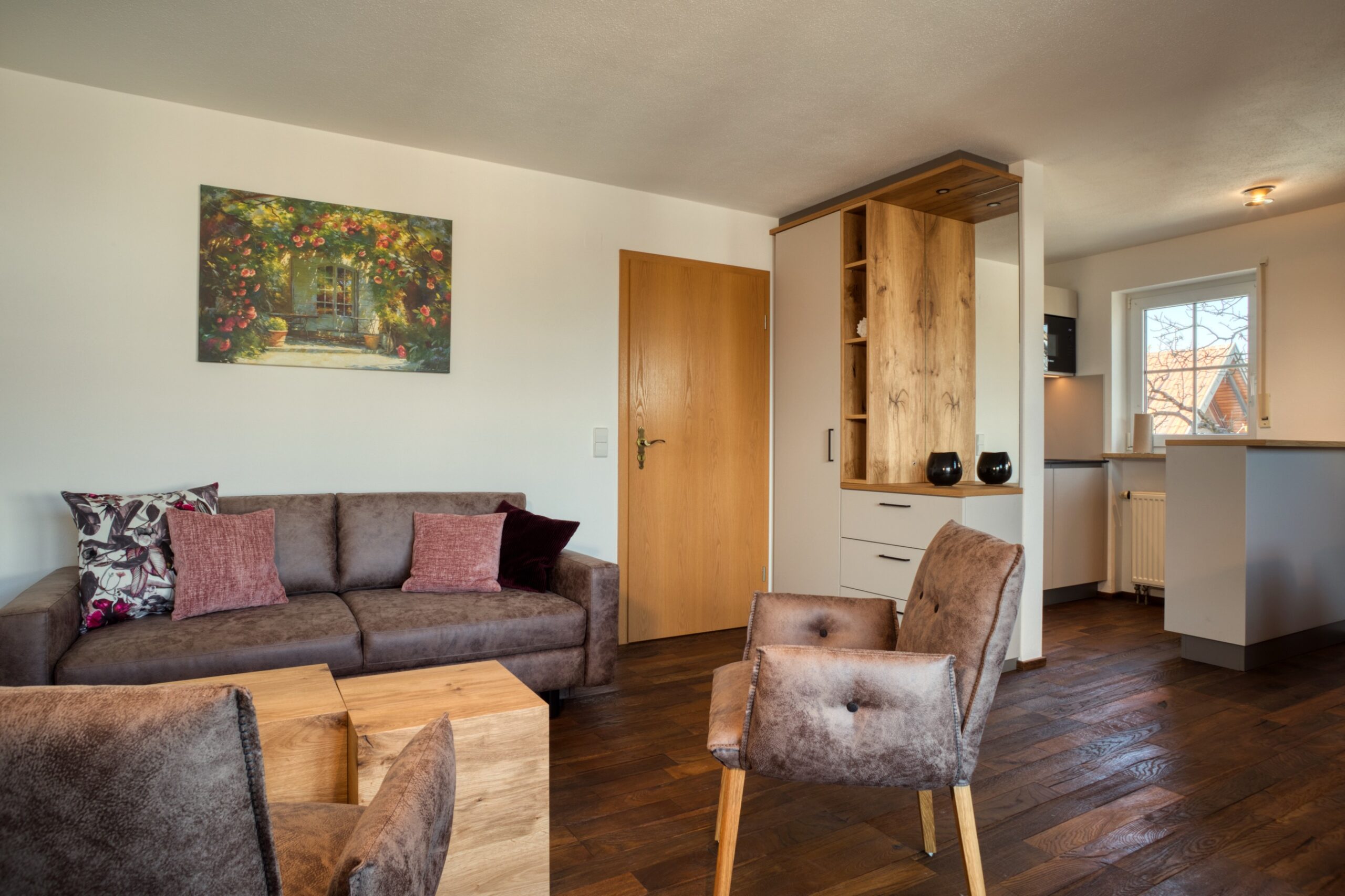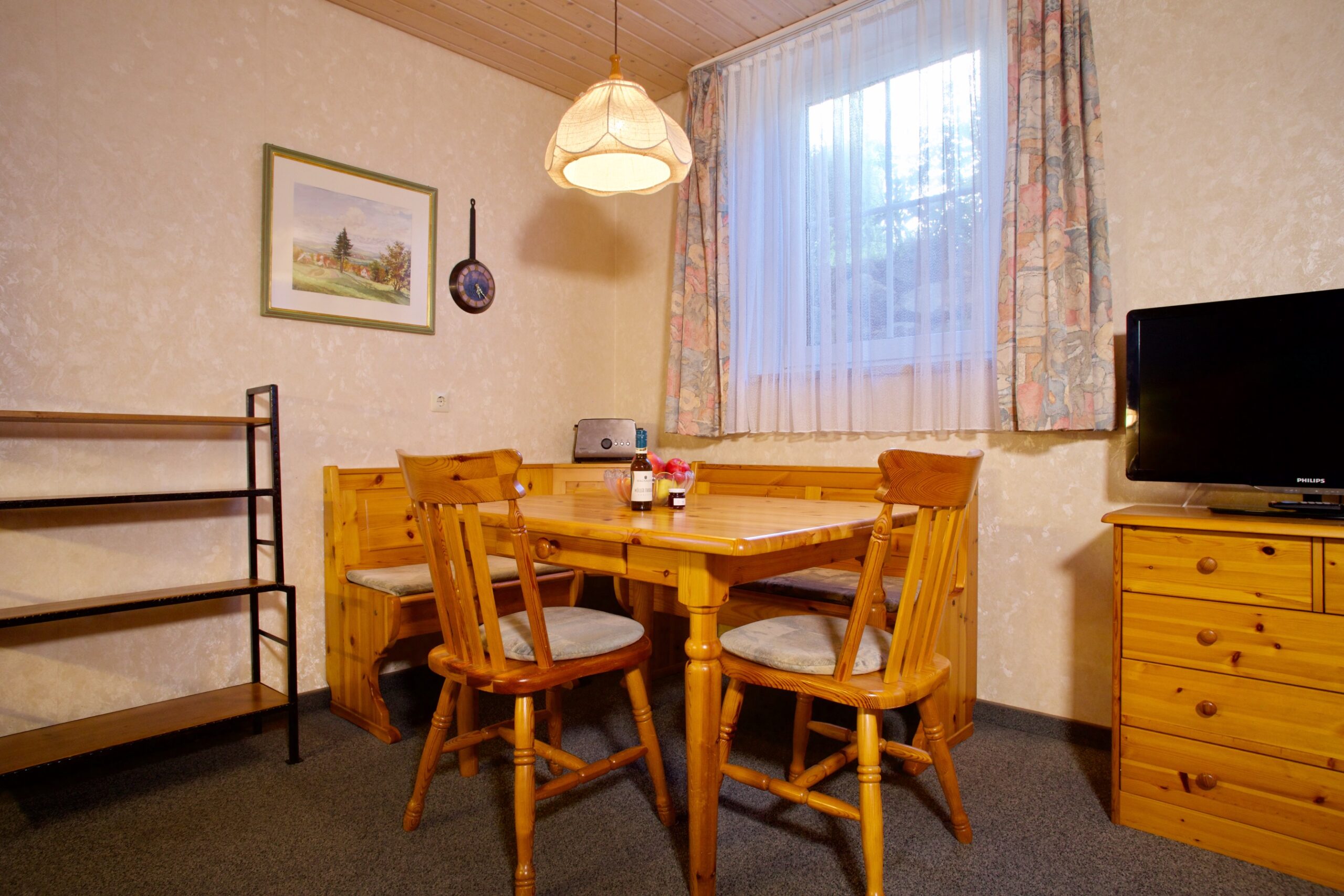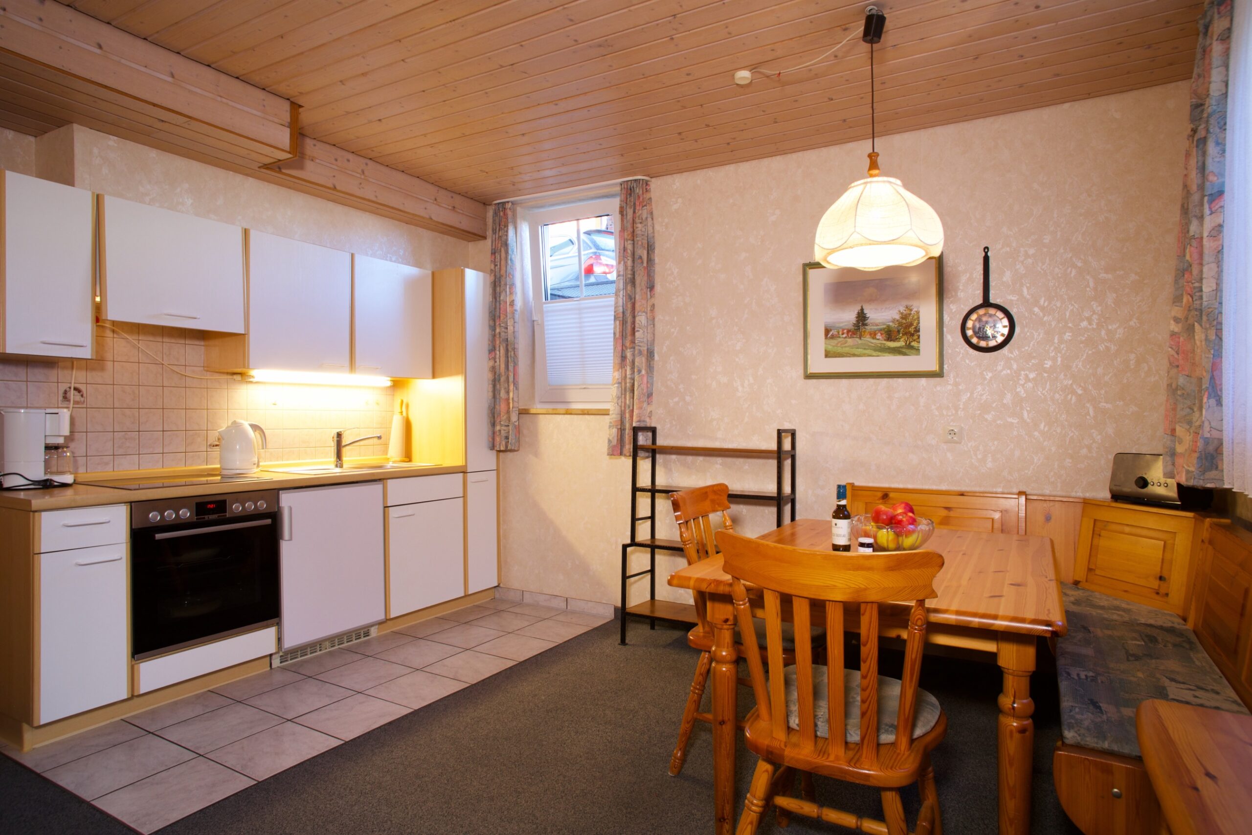 Unsere Wohnungen mit hellen Kiefernholzmöbeln im ländlichen Stil sind alle mit eigenem Telefonanschluß, Sat-TV, Dusche/WC oder Bad ausgestattet. In einer im Wohnraum befindlichen Küchenzeile oder separaten Küche finden Sie, was Sie zur Versorgung im Urlaub brauchen.