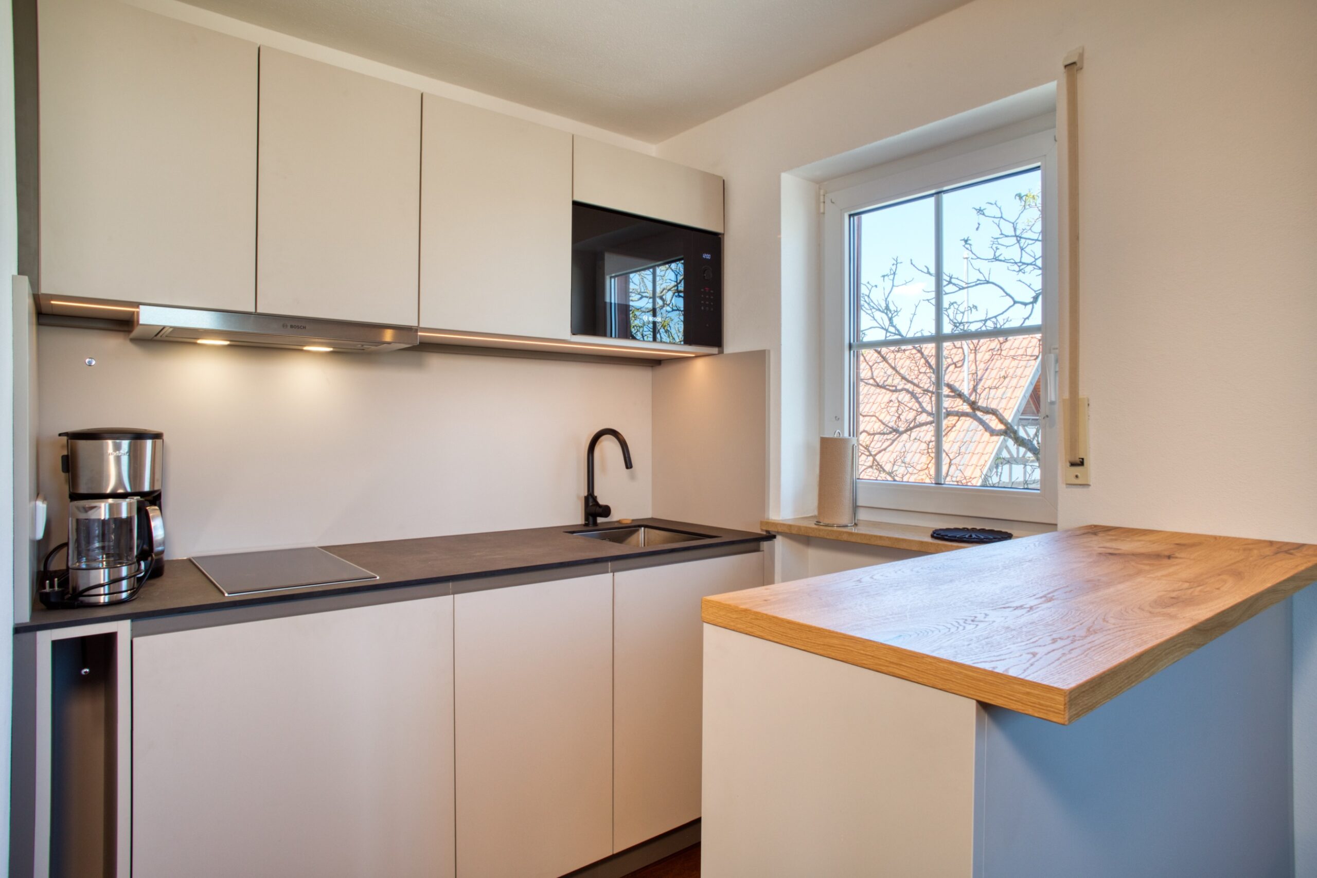 im Sousterrain, hell und freundlich, ohne Balkon. Preisgünstig, an heißen Tagen unsere kühlste Wohnung.